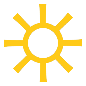 Blazon: Sable, a sun and an orle embattled on the inner edge Or.